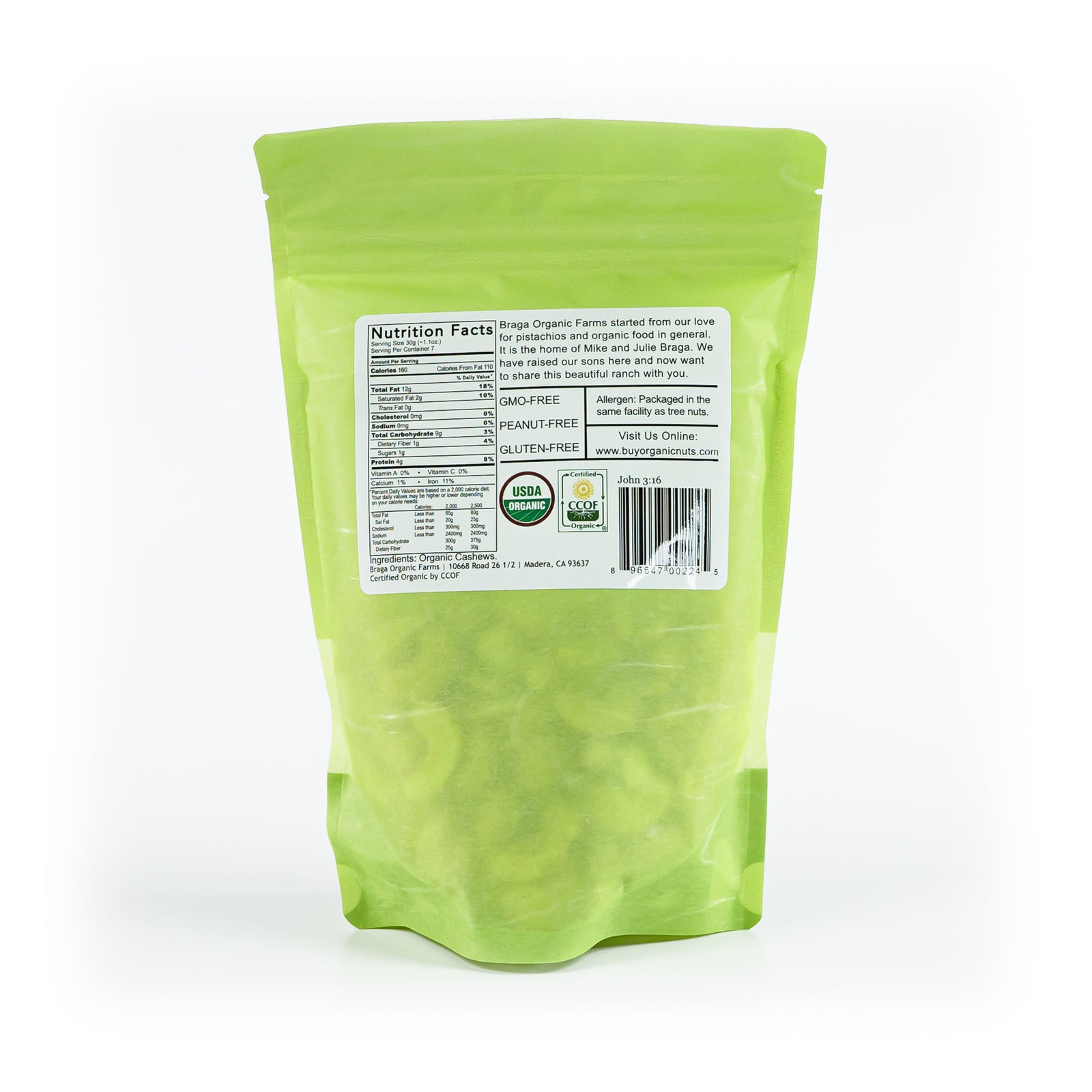 This is case of 12- 8 oz green rice standup paper bags of organic cashews. It ships in a 14x10x6 case. It has a best by date of 6 months from shipping. Comes in raw and roasted/salted. We are unable to mix/match. Each case will be 12 bags of the same flavor.